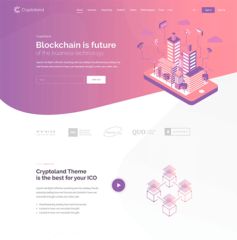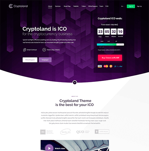 Cryptoland is power pack ICO Landings for work with cryptocurrency business